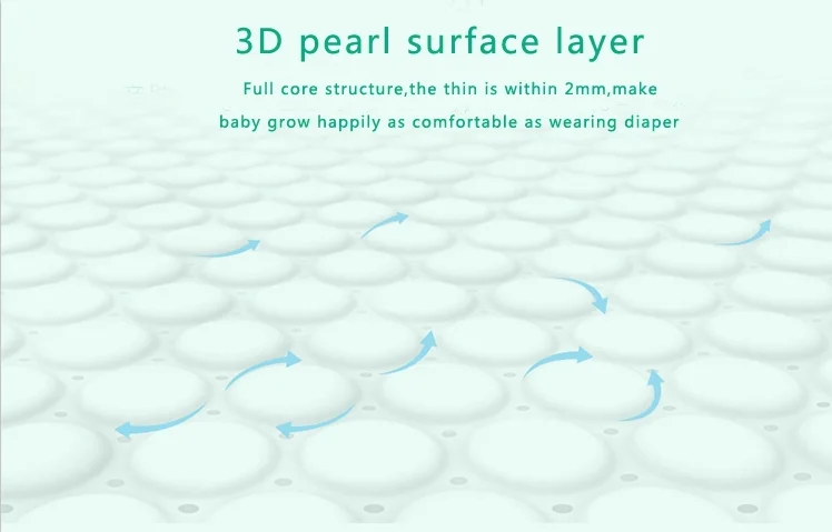 2)Imported material:Japanese SAP and American fluff pulp make the cotton core ultra soft high absorption and natural to baby skin.