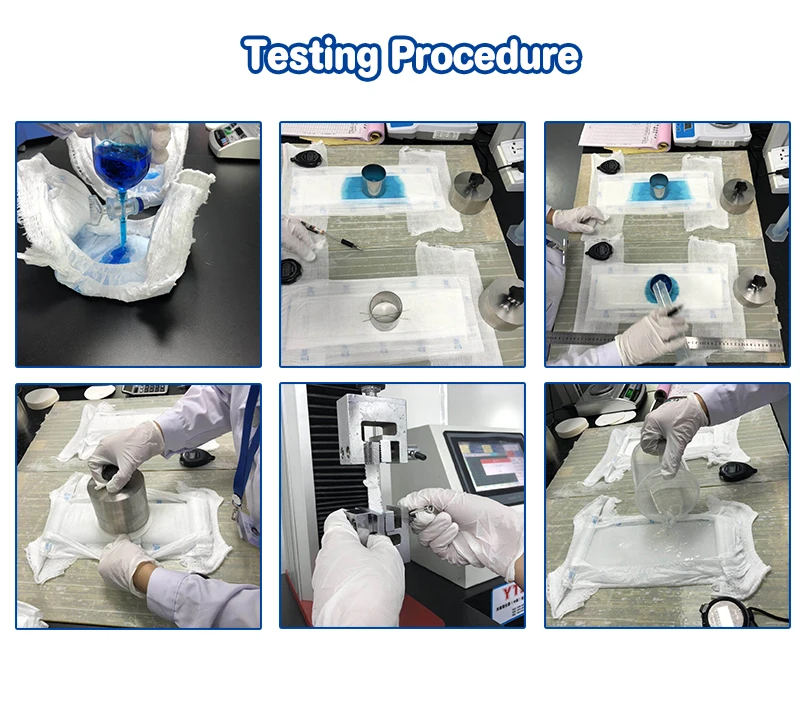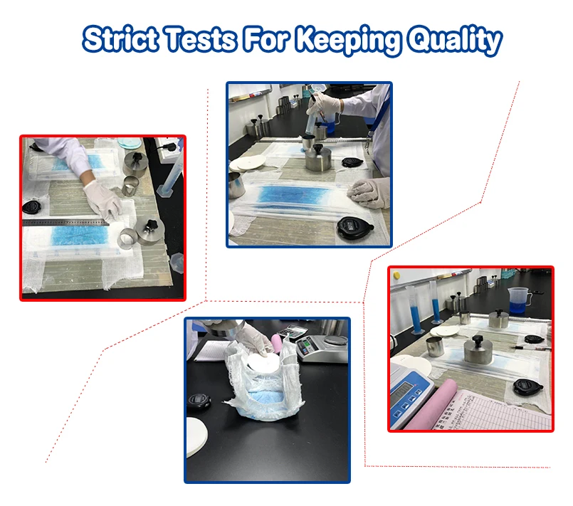 Equip kinds of instruments for Maximum Adsorption, Keep Maximum Urine, fluid run-off & Leakage test etc.each 30mins to make sure high quality.